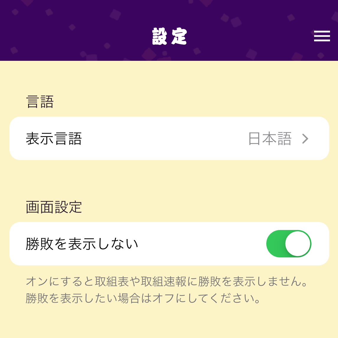 ※設定すると、プッシュ通知にも勝敗が表示されなくなります